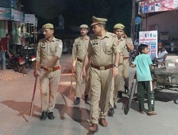 चौसाना। बुधवार शाम चौकी प्रभारी खूब सिंह पुलिस बल के साथ दबंग अंदाज में कस्बे के मुख्य मार्ग और बाजारों में गश्त पर निकले। त्योहार और हाट-बाजार के चलते चौसाना बाजार के मुख्य मार्ग पर आए दिन जाम की स्थिति बनी रहती है।