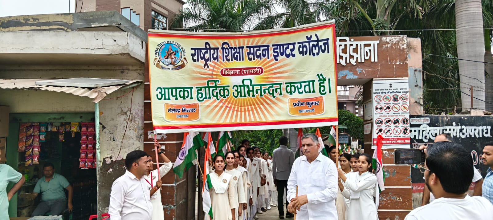 झिंझाना में आरएसएस इंटर कॉलेज ने निकाली तिरंगा रैली।